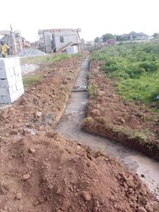 Captured in real time, our workers are laying the concrete foundation for roadside drainage channels across the estate.